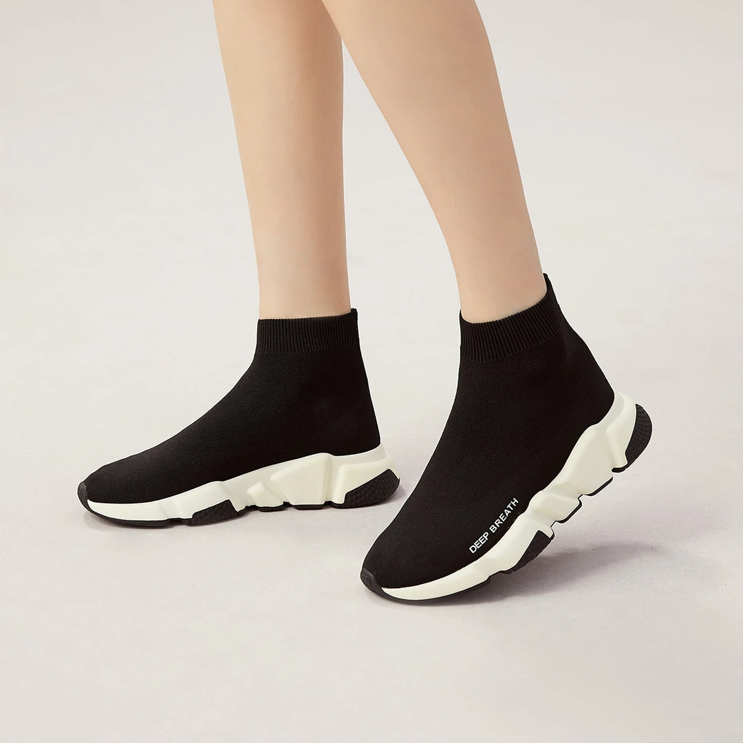 哥弟真的好女鞋新款时尚高帮弹力袜子鞋厚底一脚蹬鞋 AX12037