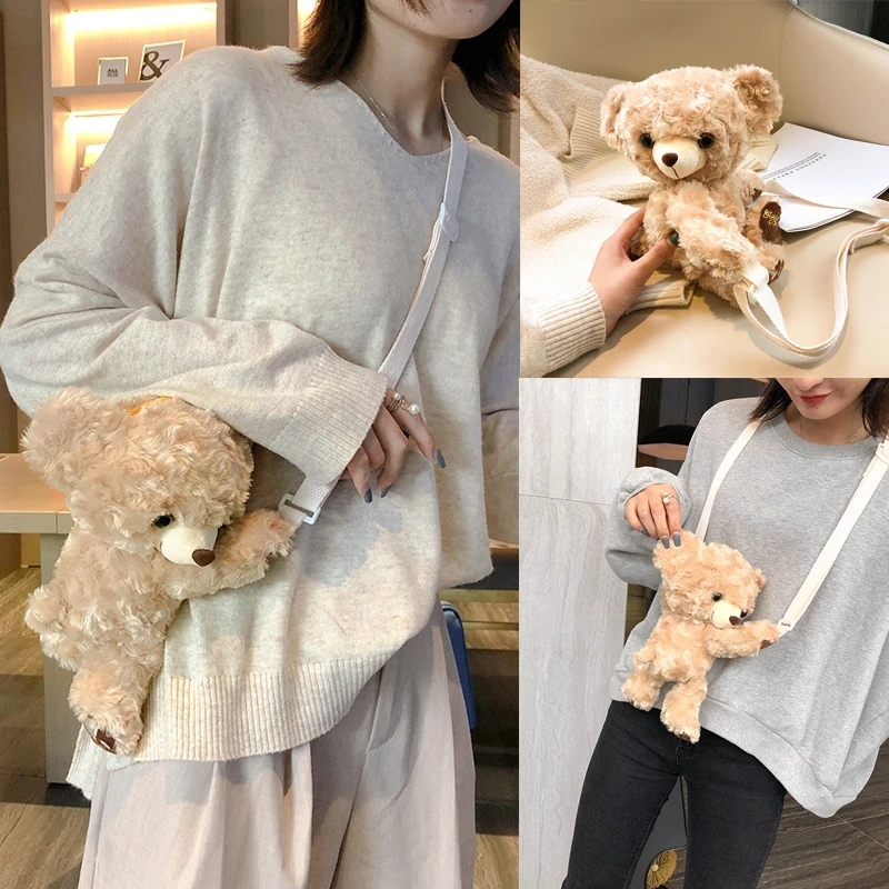 儿童毛绒玩具包包时尚可爱公主女童斜挎包泰迪熊公仔小女孩卡通包
