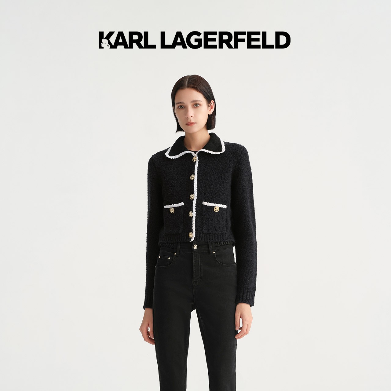 【官方】KARL LAGERFELD卡尔拉格斐秋撞色边双袋针织开衫E36W2015
