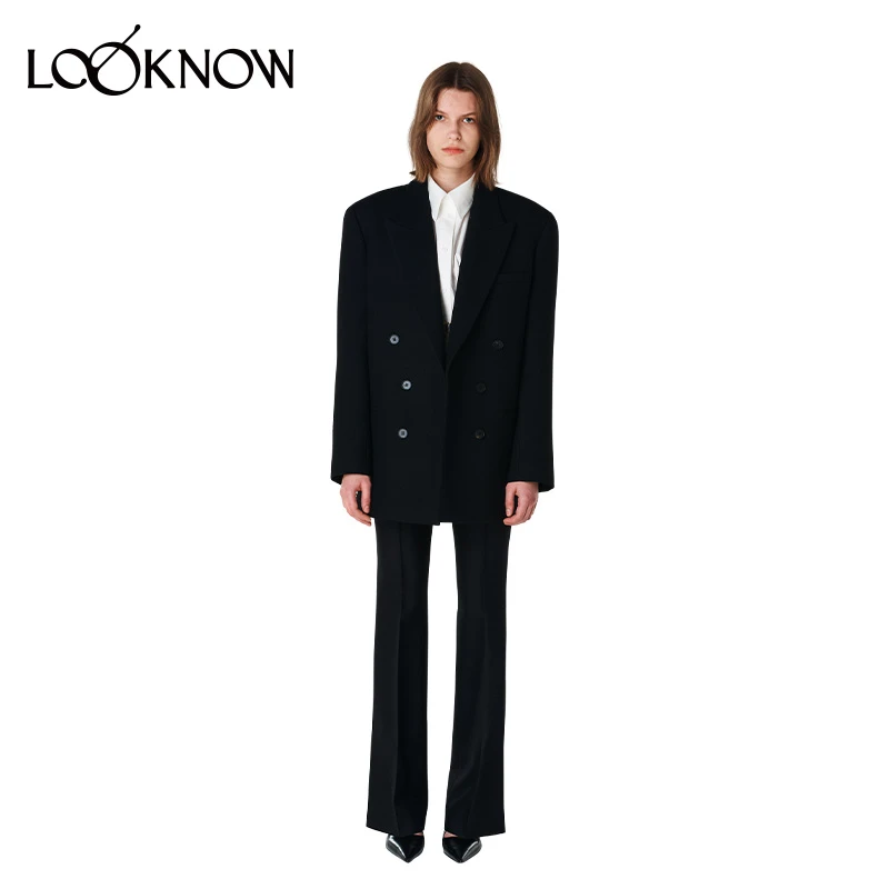 YCH设计师品牌LOOKNOW 秋冬23新款黑色大女主修身双排扣夹克外套