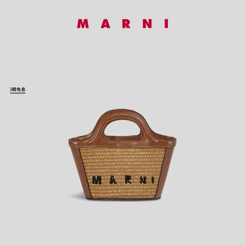 MARNI TROPICALIA经典款小号时尚复古草编斜挎包编织包